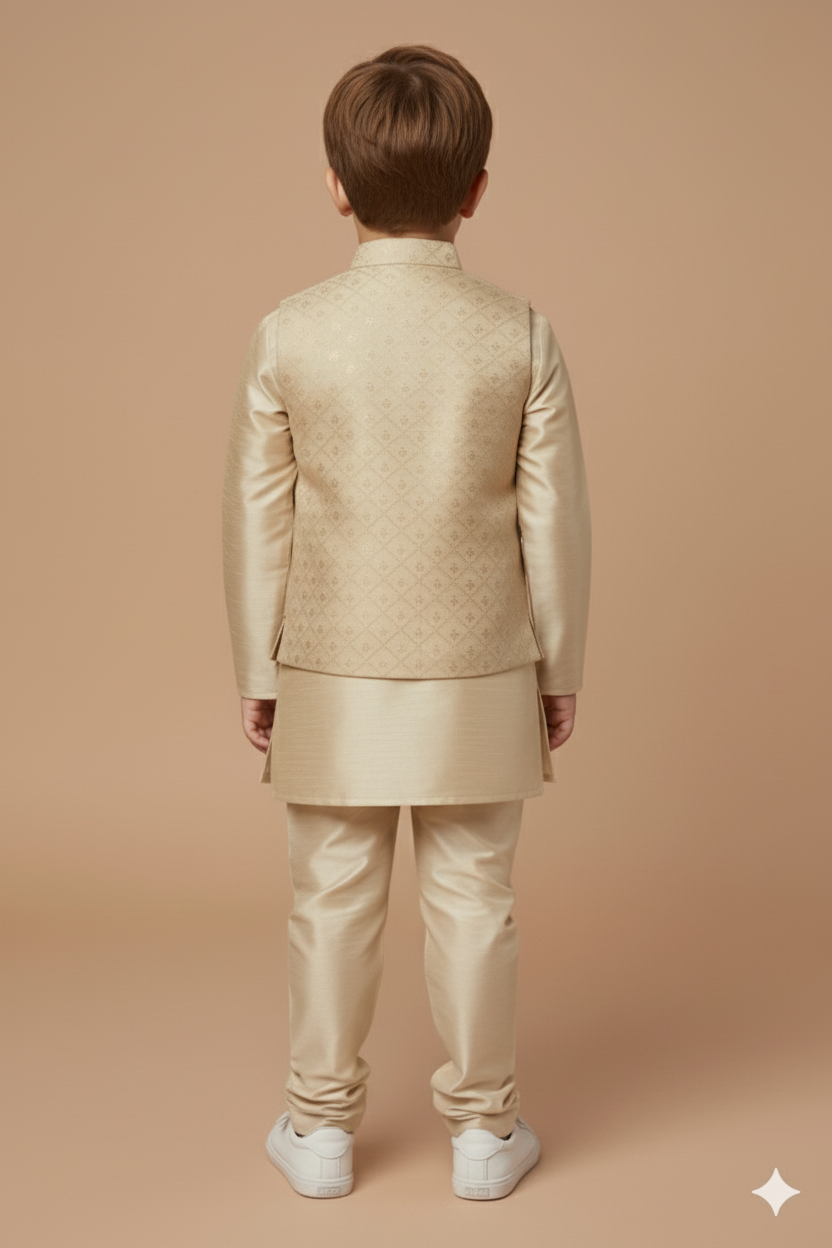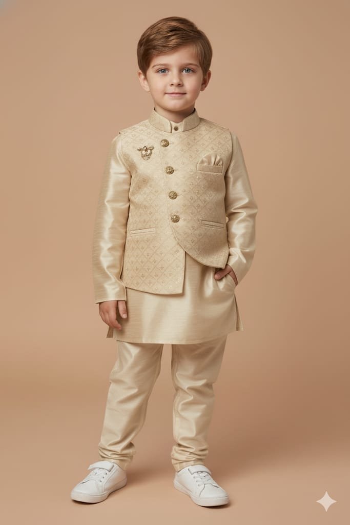 ✨ Elegant Cream Silk Waistcoat & Kurta Set (Size 4-5 Years)