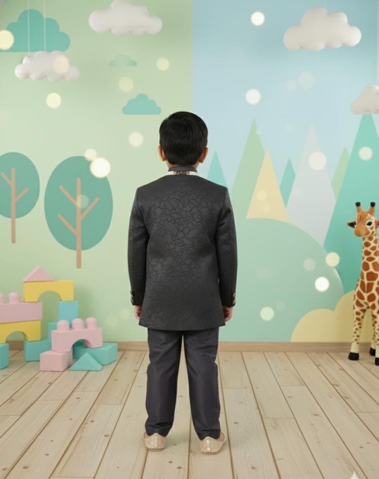 Elegant Dark Grey 3-Piece Coat Pant Set for Size 6–7-Year-Old