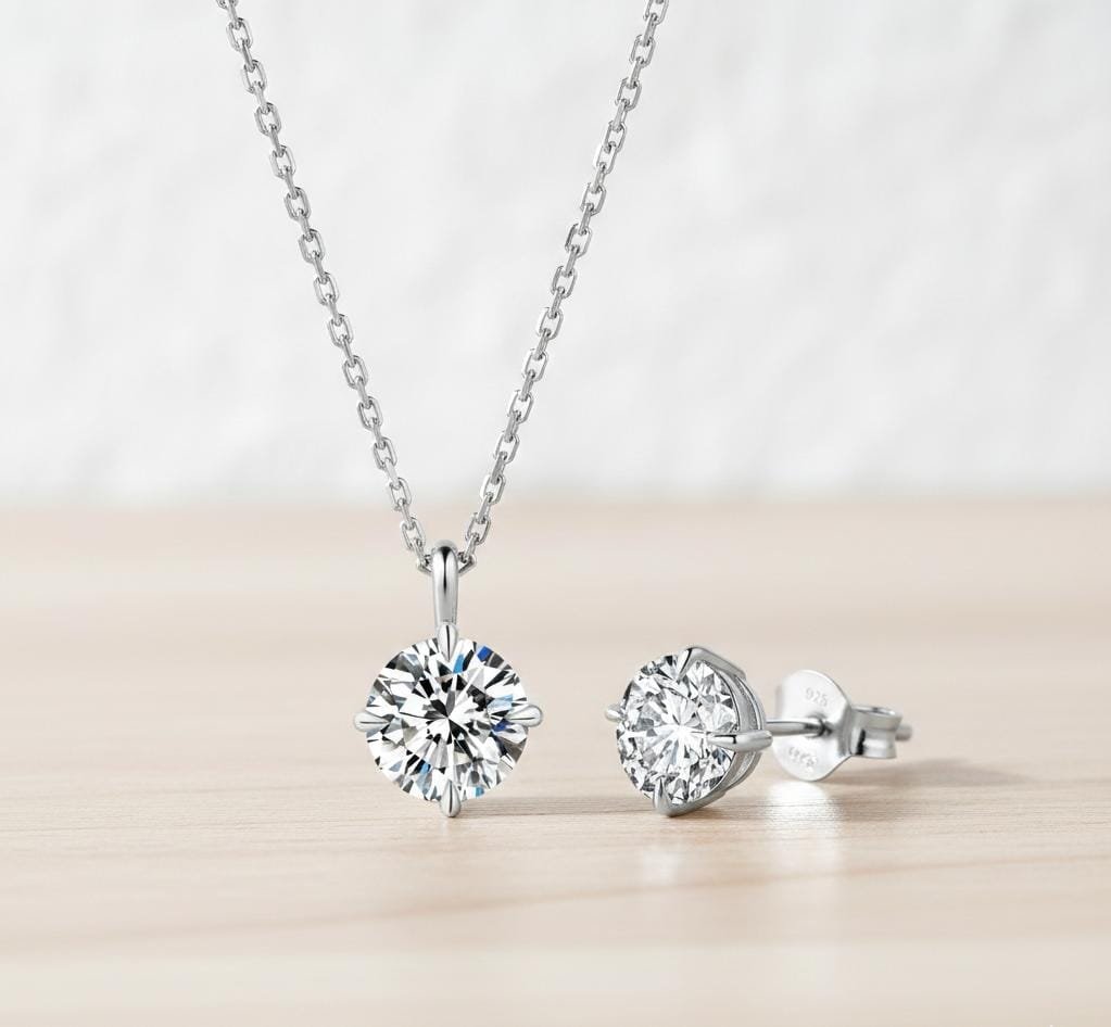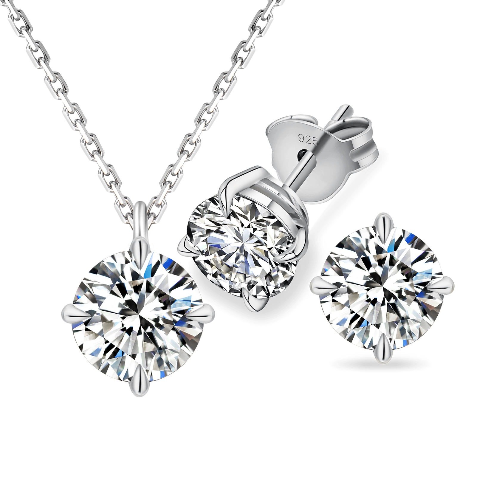Luxurious D Color Moissanite Jewelry Set – Round Brilliant Cut Pendant Necklace & Stud Earrings in 925 Sterling Silver