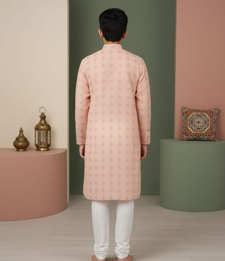 Elegant Peach Motif Kurta Pant Set (Young Adult Size)