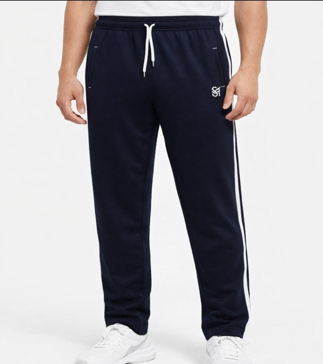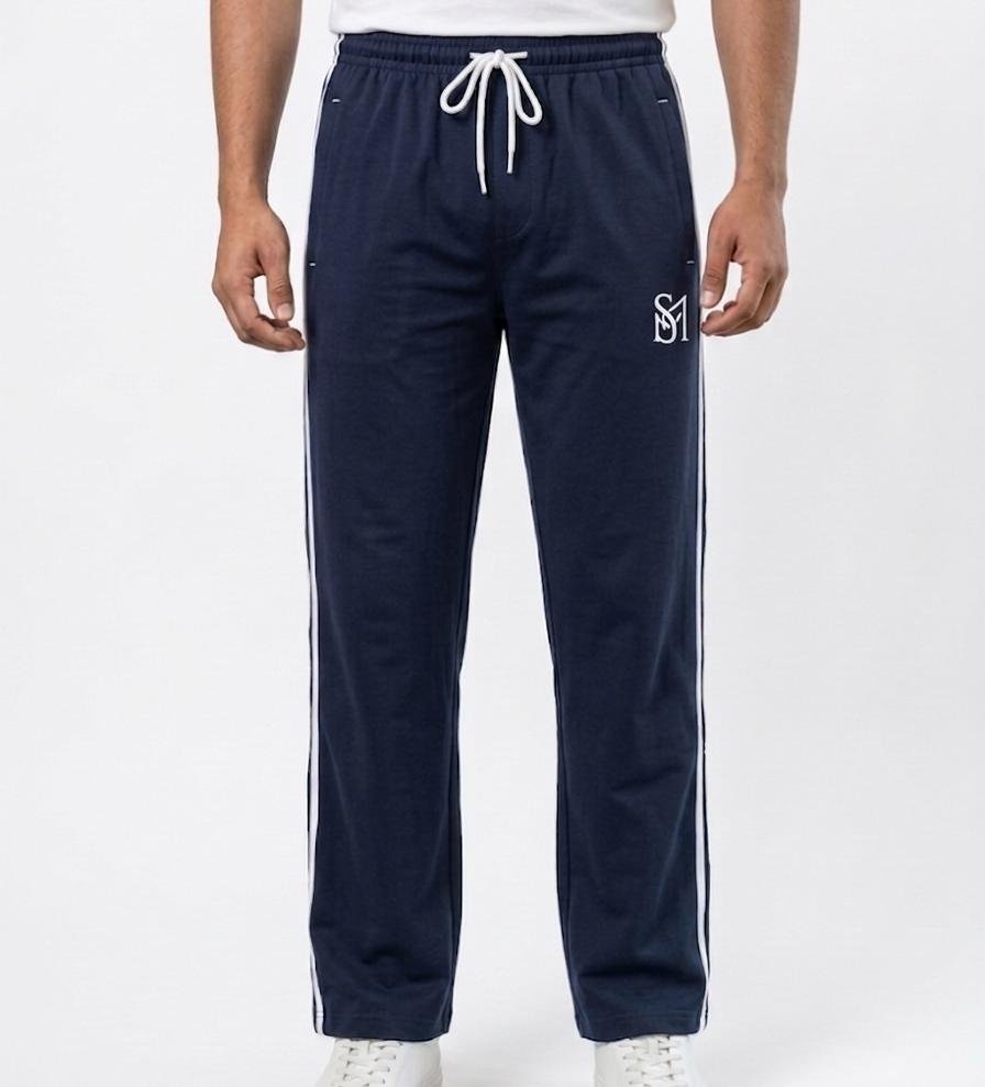 Designed with an elastic waistband and adjustable drawstring, they ensure a secure and customizable fit. The sleek navy blue color with side stripe detailing adds a sporty and modern touch to your look.