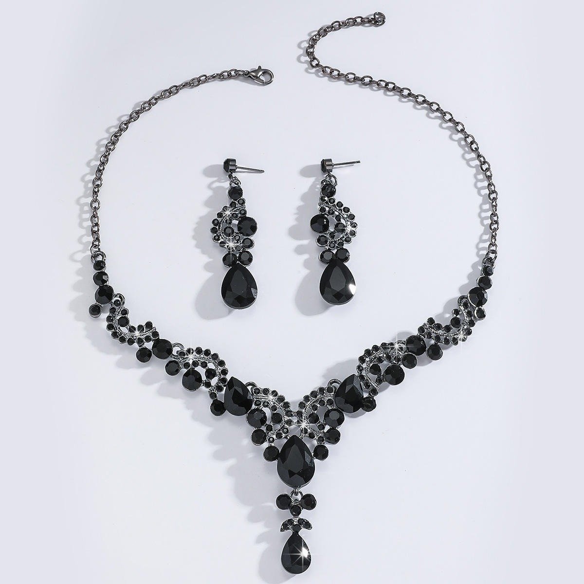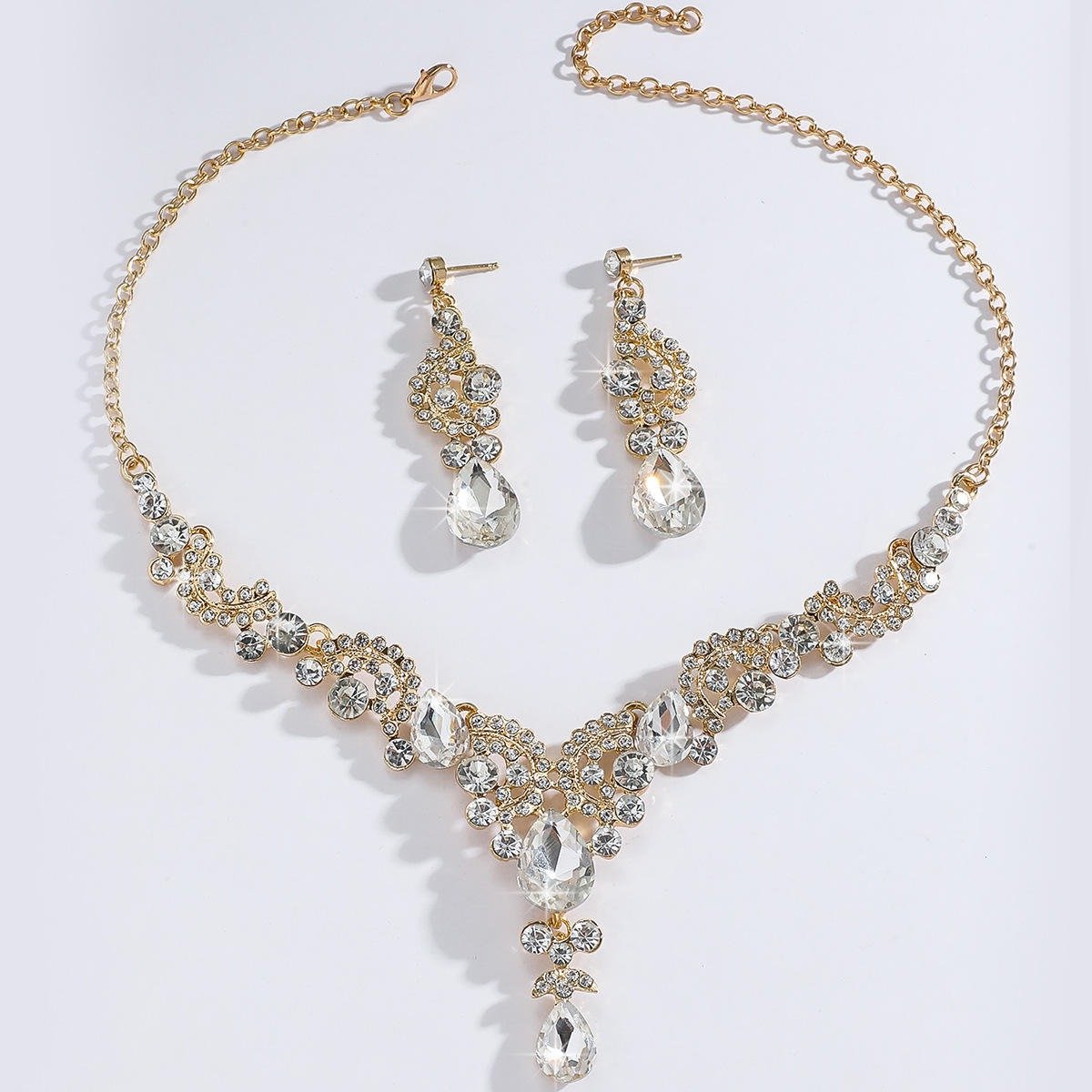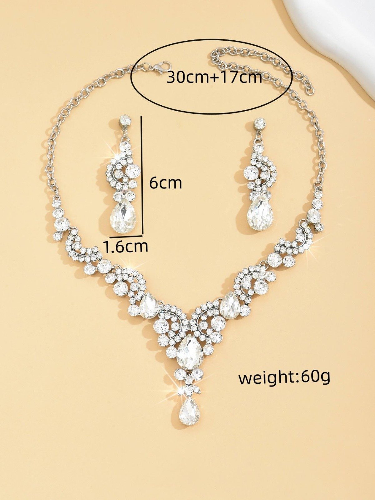 Add a touch of elegance to your look with this beautiful Rhinestone Necklace & Earring Set. Designed with sparkling crystal stones and a stylish water drop pattern, this jewelry set gives a luxurious and eye-catching appearance. The high-quality plating and fine craftsmanship make it perfect for special occasions.