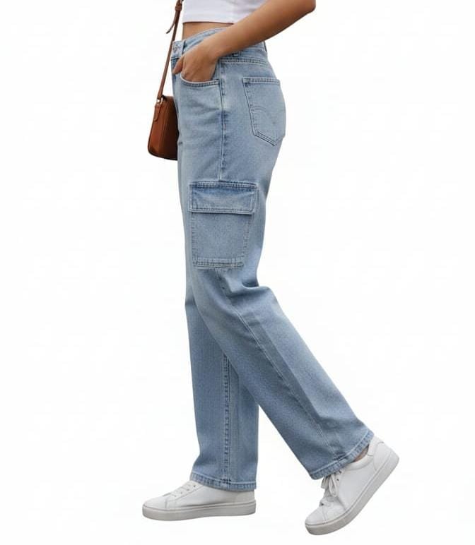 Stay on trend with the perfect mix of utility and street style. These Cargo Jeans feature a relaxed straight-leg fit and functional side pockets, offering a bold, edgy look without compromising on comfort. Ideal for casual outings, travel, or a stylish college look.