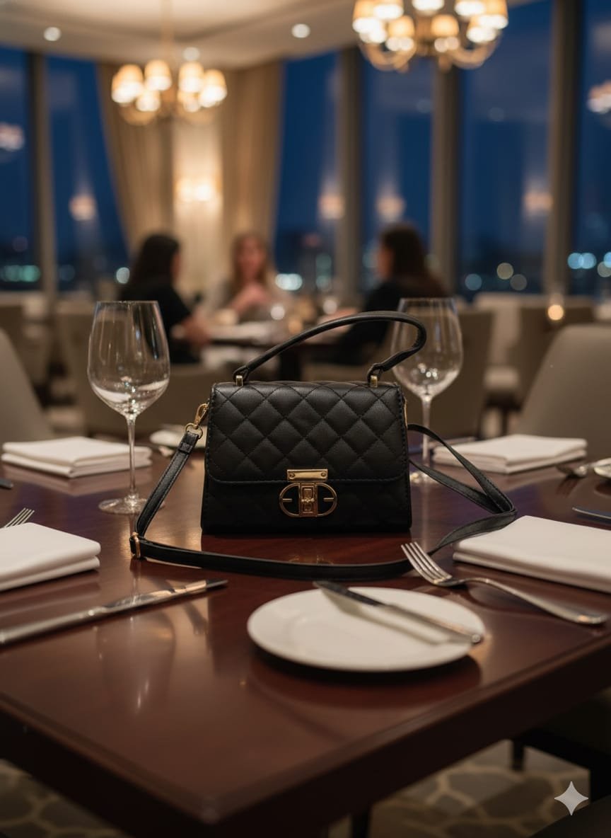 This compact yet spacious accessory is perfectly sized to hold your essentials—phone, wallet, keys, and a few cosmetics—without being bulky. Whether you’re heading to a coffee shop, a business lunch, or a casual dinner, this quilted sling bag is the perfect choice to complete any fashionable ensemble.